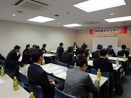 ![]() セミナーの様子 愛知県名古屋市の安保ホールにて旅行会社、関係者含め30名が参加のもと、「朝鮮観光セミナー」が開催されました。 今回のセミナーで韓正治社長は、諸外国及び日本からの朝鮮観光・朝鮮の主要観光地案内などについて講演をしました。 観光に最も適している季節や土産品、携帯電話使用などについての質疑応答のあった後、主催者であるブルースカイツアーの来春発売に向けた朝鮮観光商品の説明がありました。 |