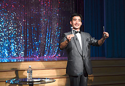 万景台区域光復通りに位置する平壌マジック劇場(2002年開館)では月に20回、国立サーカス団所属のマジシャンらによるマジックショーが行われている。筒の中から大同江ビールが次々と現れ、ガラステーブルをフォークが貫通、トランプや動物を使ったオーソドックスなマジック、人やオートバイなどの消えるはずのないものが一瞬にして消えたり出現したりする大掛かりなイリュージョンまで、びっくりだけじゃない、笑いもある楽しさ満点のさまざまなマジックを楽しむことができる。 ショーはひと月に1回のペースで内容・構成を更新する。 不断に新しい技術、表現を作り出すことが求められるわけだが、マジシャンのアン・チョルさん(32)さんは、「世界的な流れを意識しつつ、一方でオリジナリティを追求している。われわれのマジックには唯一無二の作品が多い」と自負する。 子どもから大人まで、幅広い世代から人気を集める朝鮮のマジックショー。 国立サーカス団マジック課長のキム・チョルさん(56)によれば、マジックの発展と大衆化のための取り組みが、国家的な施策のもとで積極的に推進されているという。 隔年で開かれている「4月の春人民芸術祝典」の種目には、今年から新たにマジックショーが追加され、各地からプロのみならずアマチュアマジシャン60余人が平壌に結集。 連日にわたって多種多様なパフォーマンスを見せた。 「4月の春人民芸術祝典」の予選として、来年からは地域対抗のマジック競演が隔年で開催される。 現在各地の芸術団にマジック専門部署の設置が進んでいるほか、アマチュアを含めたマジシャン養成のための平壌サーカス学院における短期講習が今秋をめどに開講する予定だ。 マジックショーの所要時間は約1時間。劇場のキャパシティは300人と大きくはないが、その分和気藹々とした雰囲気のなか、近くで見ることができ、盛り上がること請け合い! |